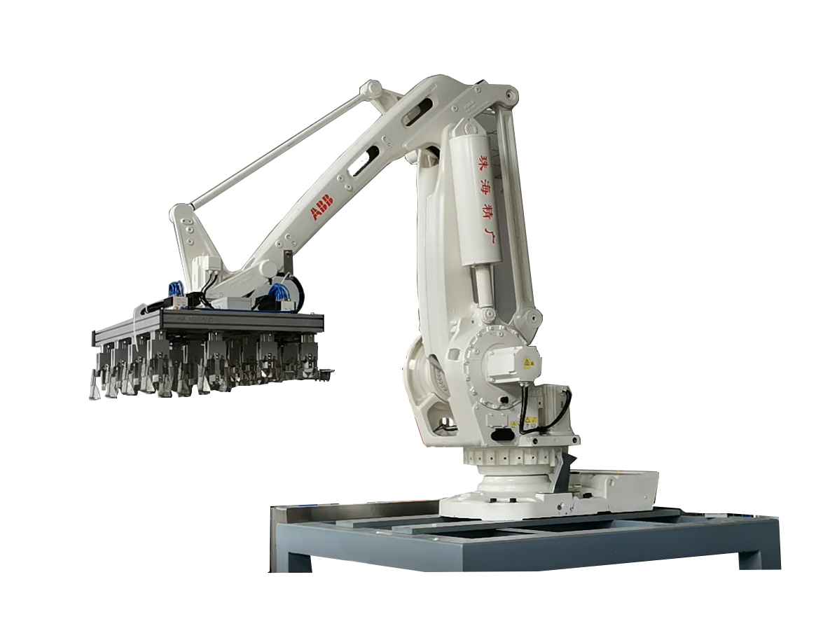 Stacking robot is a high-tech product integrating machine and electricity. It automatically stacks the bags, cartons or other packaging materials transported from the conveyor according to the working mode required by the customer's process requirements, and conveys the stacked materials.